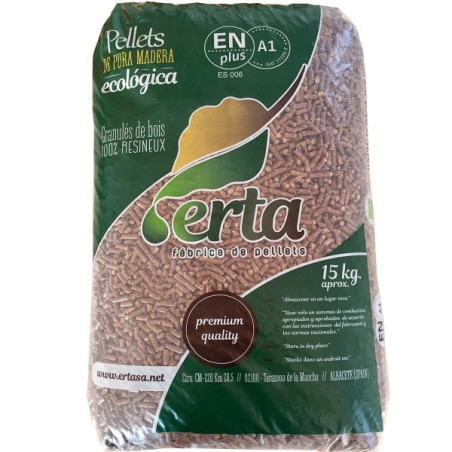 Saco de pellets de calidad superior en saco de 15 kg.