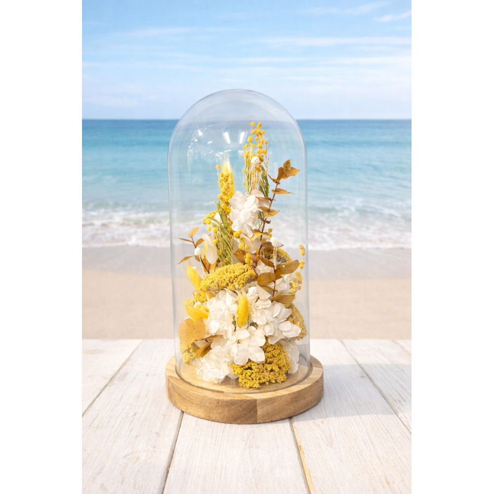 Cúpula flor seca en tonos amarillos
