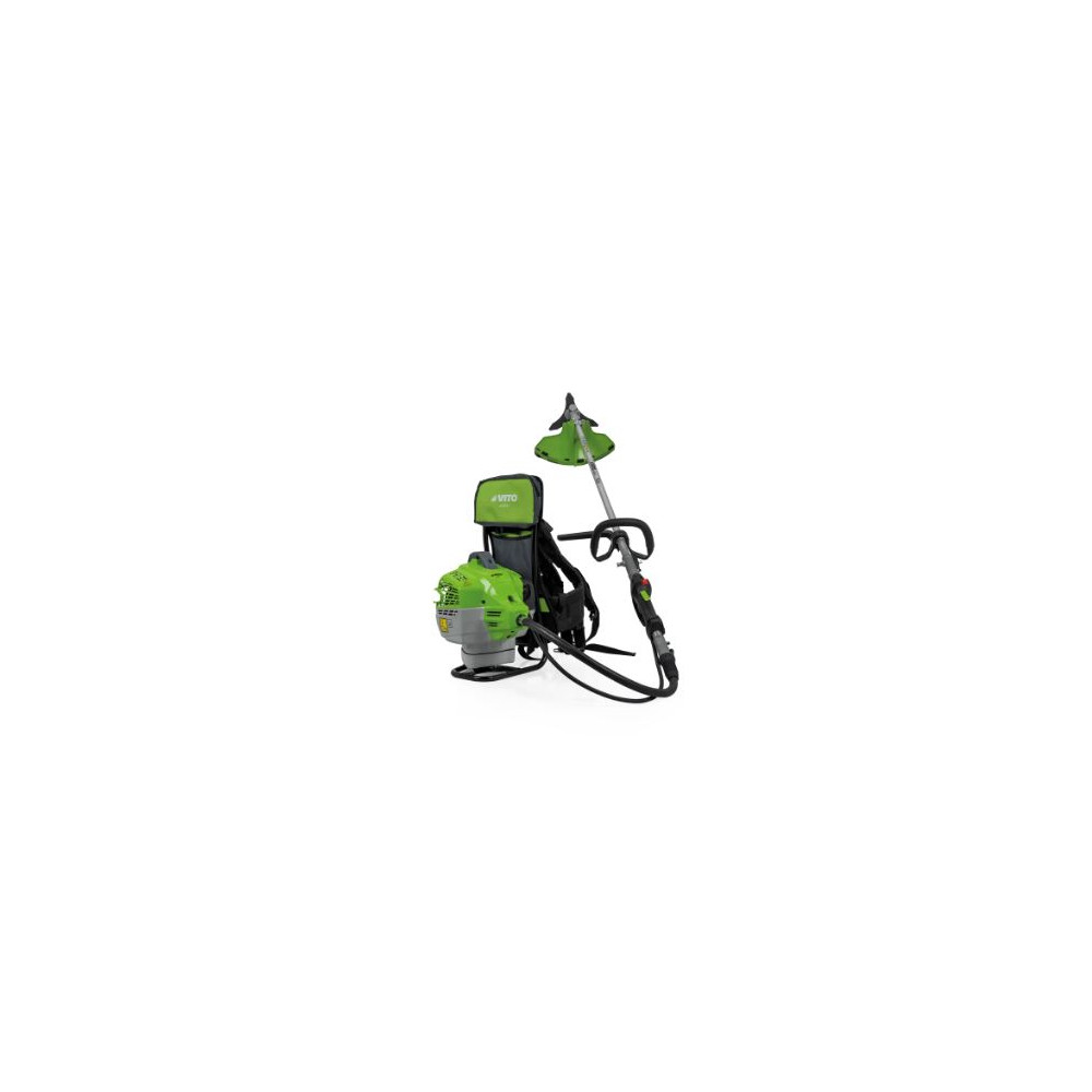 Desbrozadora de mochila con una velocidad de rotación 7750 - 8150rpm, una potencia de 2,6 CV y un depósito de 1,0 litros.