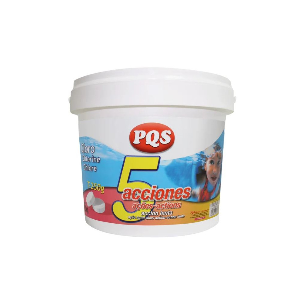 Cloro en tabletas de disolución lenta con 5 efectos: Desinfectante, Estabilizador de Cloro, Algicida, Antihongos y Floculante.