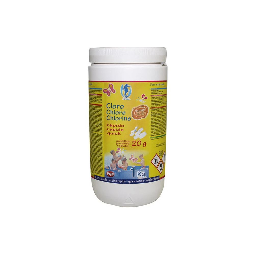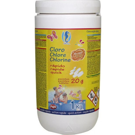 Clorador de acción inmediata. Propiedad efervescente, disolución rápida. Estabilizador del nivel de cloro en el agua.
