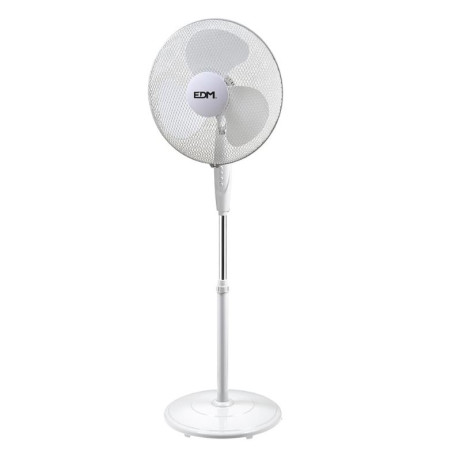 VENTILADOR DE PIE CON BASE CIRCULAR BLANCO 45W Ø ASPAS 40CM ALTURA REGULABLE 110-130 cm 3 VELOCIDADES CABEZAL AJUSTABLE/OSCILANTE CAUDAL AIRE 3000m3/h 220/240V – 50Hz 3 PALAS EDM.